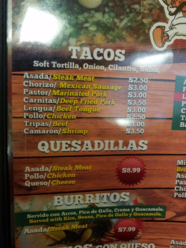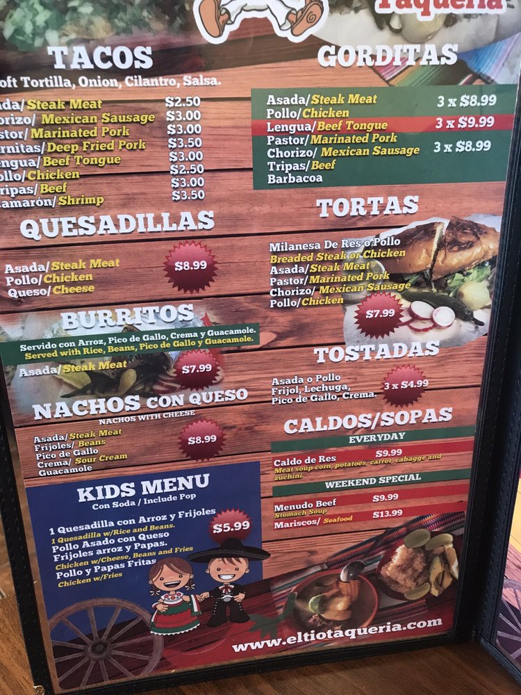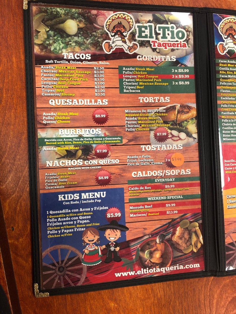 El Tio Taqueria Menu